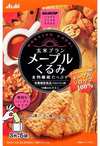 特長: 100%使用加拿大產的楓糖漿,滿滿食物纖維的玄米和小麥的麵團中加入楓糖漿,再加入核桃,香噴噴的香味與特別的口感,同時富含10種維他命,還含有鐵和鈣,鐵是製造紅血球必須的營養素。鈣是促進骨骼和牙齒形成的必要營養素。輕便的小包裝使得無論何地何時都能品嘗,這款營養豐富健康美味的餅乾。