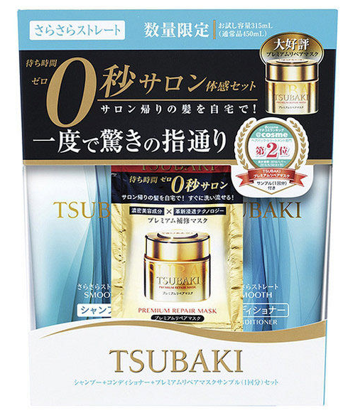 日本資生堂TSUBAKI藍椿洗護套裝 清爽直髮(315ml+315ml+0秒修復奢華髮膜15g)