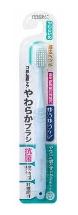 特長: ●本產品寬廣頭的柔軟刷,可輕松去除口腔內的食渣,保護口腔黏膜。