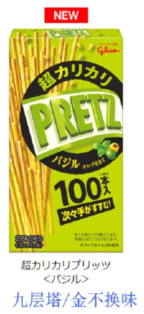 特長: 【原材料】小麥粉、植物油脂、澱粉、乾燥馬鈴薯、砂糖、小麥蛋白、起酥油、食鹽、昆布精華粉末、醬油調味料、意大利麵 “青醬”口味調味料、黃油、車達芝士粉末、酵母精華、大蒜烤肉調味料、乾燥九層塔/加工澱粉、調味料(氨基酸等)、增粘劑(黃原膠)、乳化劑、香料、色料(類胡蘿蔔素)、酸味料、(原材料的一部分里含乳成分、小麥、大豆。)