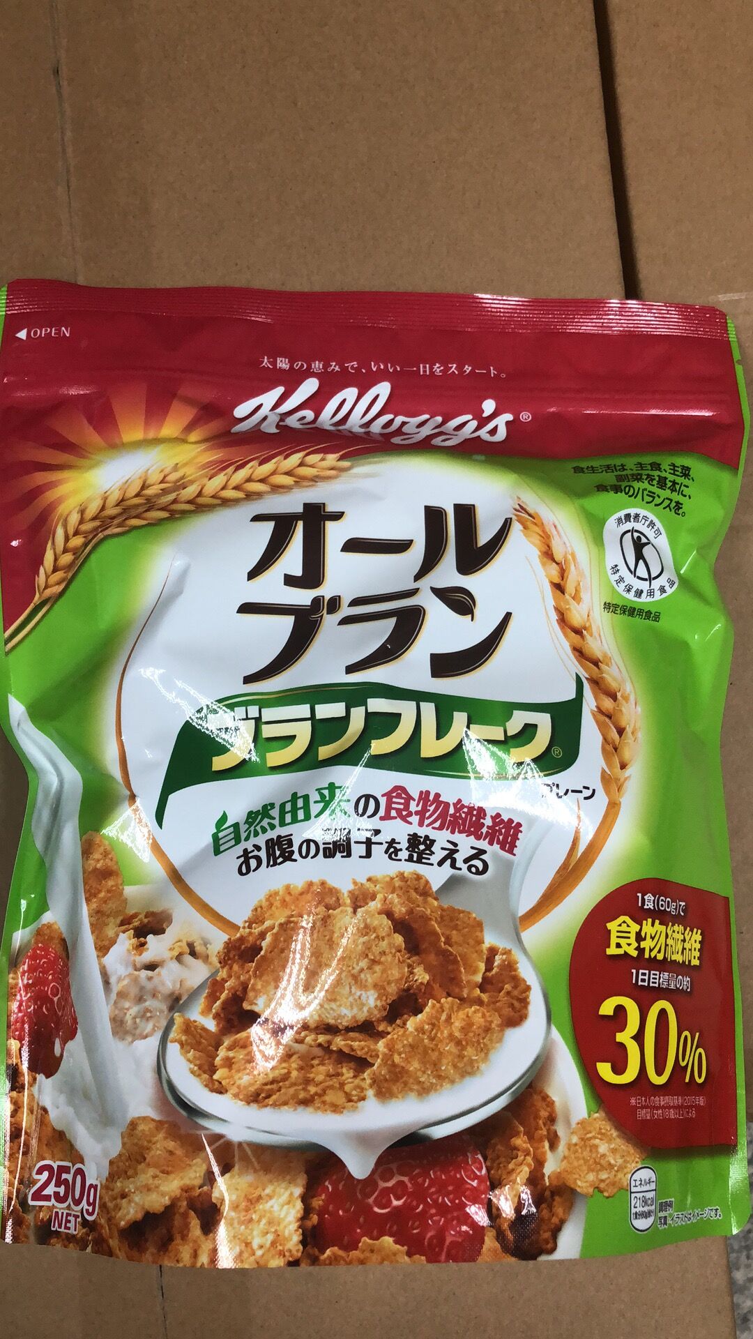 來自自然的食物纖維,有效調整腸胃。小麥的表皮富含食物纖維,是健康中不可缺少的。把小麥粒製作成薄片,香脆可口。一餐食量60g就能為每天的飲食生活,主食、主菜、輔菜維持必要的平衡。一餐60g就包含一日人體所需食物纖維的30%,不含防腐劑、色素。健康又美味。獲得日本消費者廳的許可,是特定保健用食品。