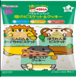 【原材料】:胡蘿蔔和南瓜餅乾:小麥粉、砂糖、起酥油、、蔬菜粉(胡蘿蔔、南瓜)、脫脂奶粉、澱粉、食鹽、含DHA精製魚油/膨脹劑、碳酸鈣、香料、焦磷酸鐵。