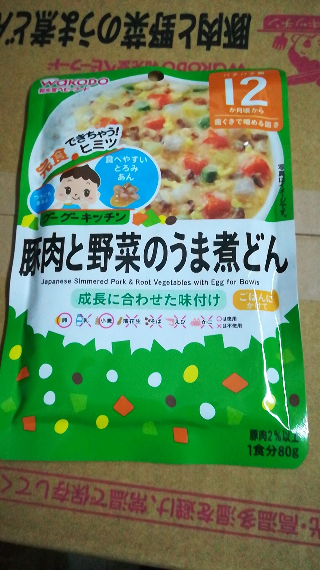 原材料名:蔬菜(胡蘿蔔、牛蒡、蘿蔔、扁豆)、鰹魚昆布汁、洋蔥泥、雞蛋、豬肉、醬油(含小麥、大豆)、砂糖、土豆、水煮香菇、米醋/增粘剂(加工淀粉)、檸檬酸