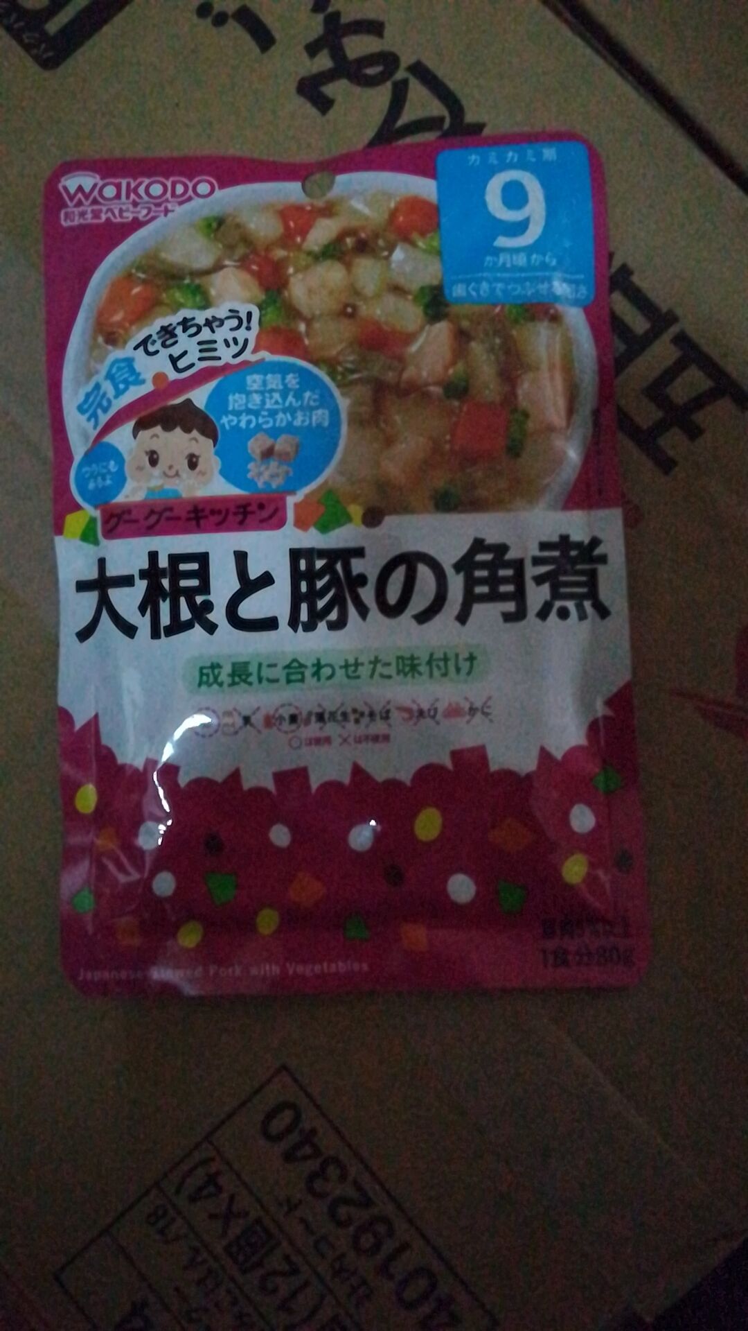 原材料名:蔬菜(蘿蔔、胡蘿蔔、牛蒡、綠菜花)、豬肉加工品(豬肉、蛋白(含雞蛋)、澱粉、食鹽)、葡萄糖、醬油(含小麥、大豆)、蘋果泥、雞清湯、植物油脂、菠蘿濃縮果汁、水煮香菇、雞精華/增粘剂(加工淀粉)
