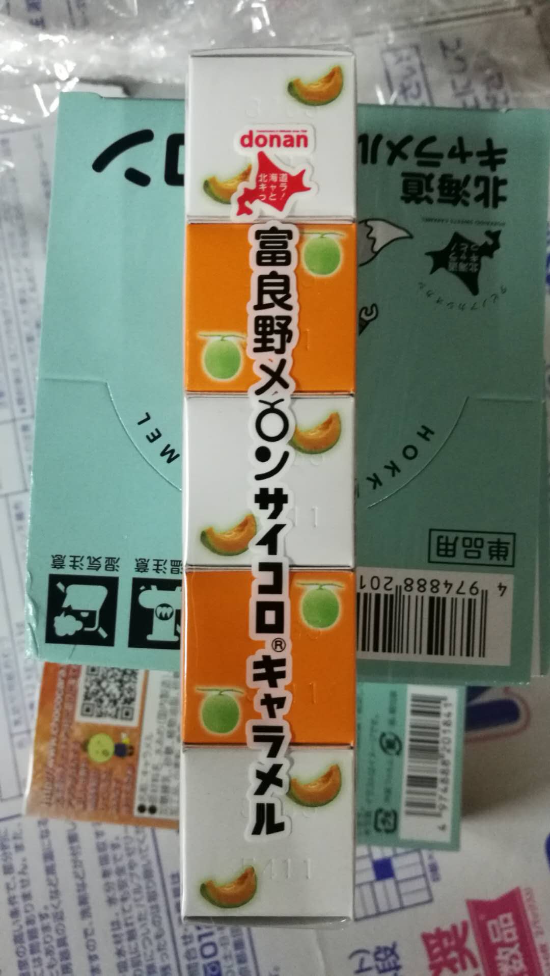 原材料名:麥芽糖糖漿、加糖煉奶、砂糖、植物油脂、小麥粉、食鹽、蜜瓜粉(使用富良野產蜜瓜)/山梨糖醇、乳化劑、酸味料、香料、色素(類胡蘿蔔素、甜菜紅)、一部分含有乳成分、小麥、大豆)