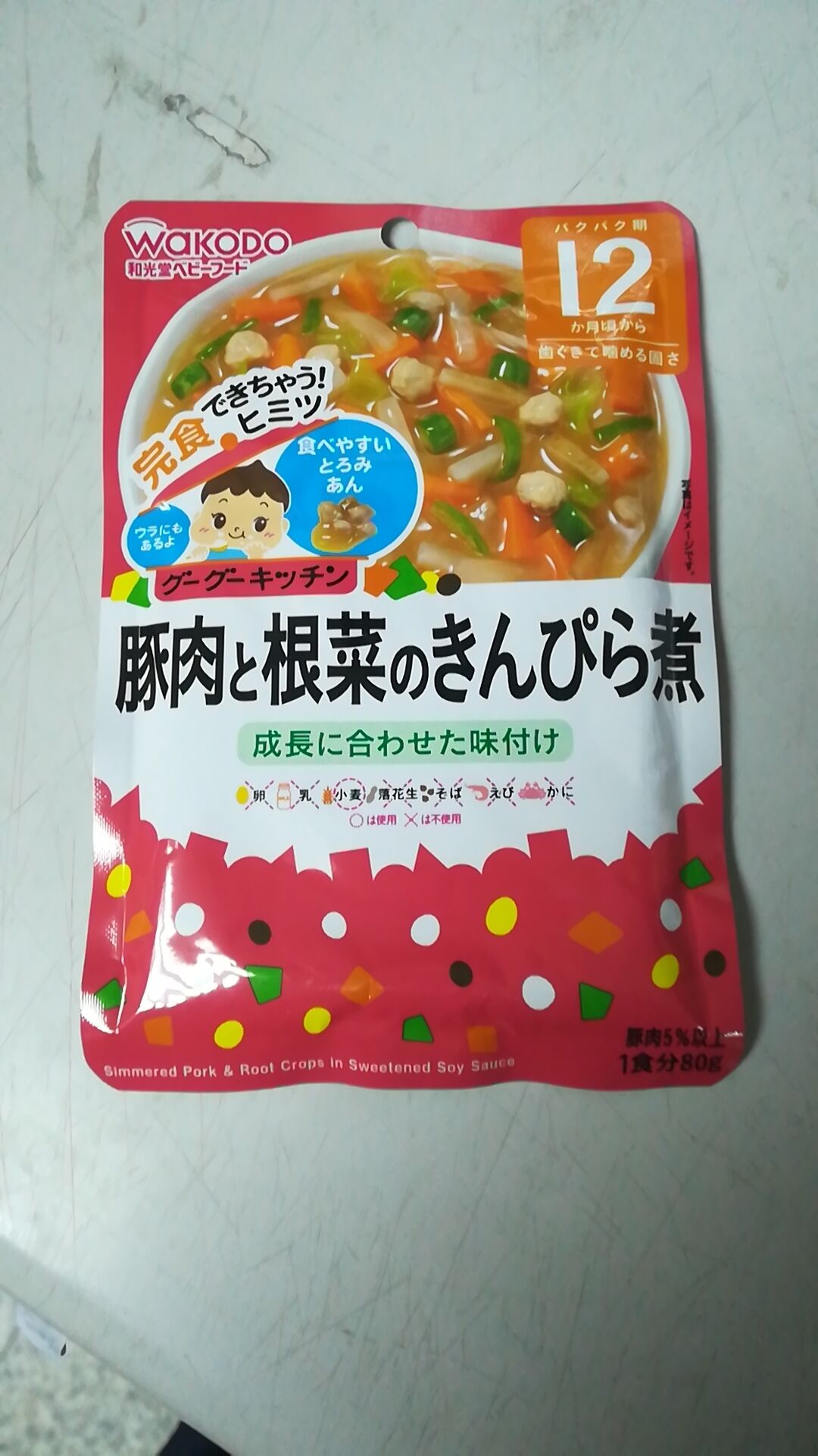 特長: 配合嬰幼兒成長必須的元素,適合嬰幼兒的味道,這款是用牙齒輕咬就能弄碎的輔食。豬肉與根莖蔬菜用麻油和貝類熬成的湯燉煮而成。簡單、方便、安全、健康、美味,是新手媽媽輔食的好幫手。