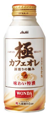 特長: 咖啡烘焙工匠花大量時間來研究和控制煎焙咖啡豆的火候,把咖啡豆深煎到極致,帶出咖啡的深厚香氣,再配合牛奶,締造出這特濃的WONDERFUL COFFEE。由日本著名咖啡店創業80年老鋪丸福咖啡店監修研製的。