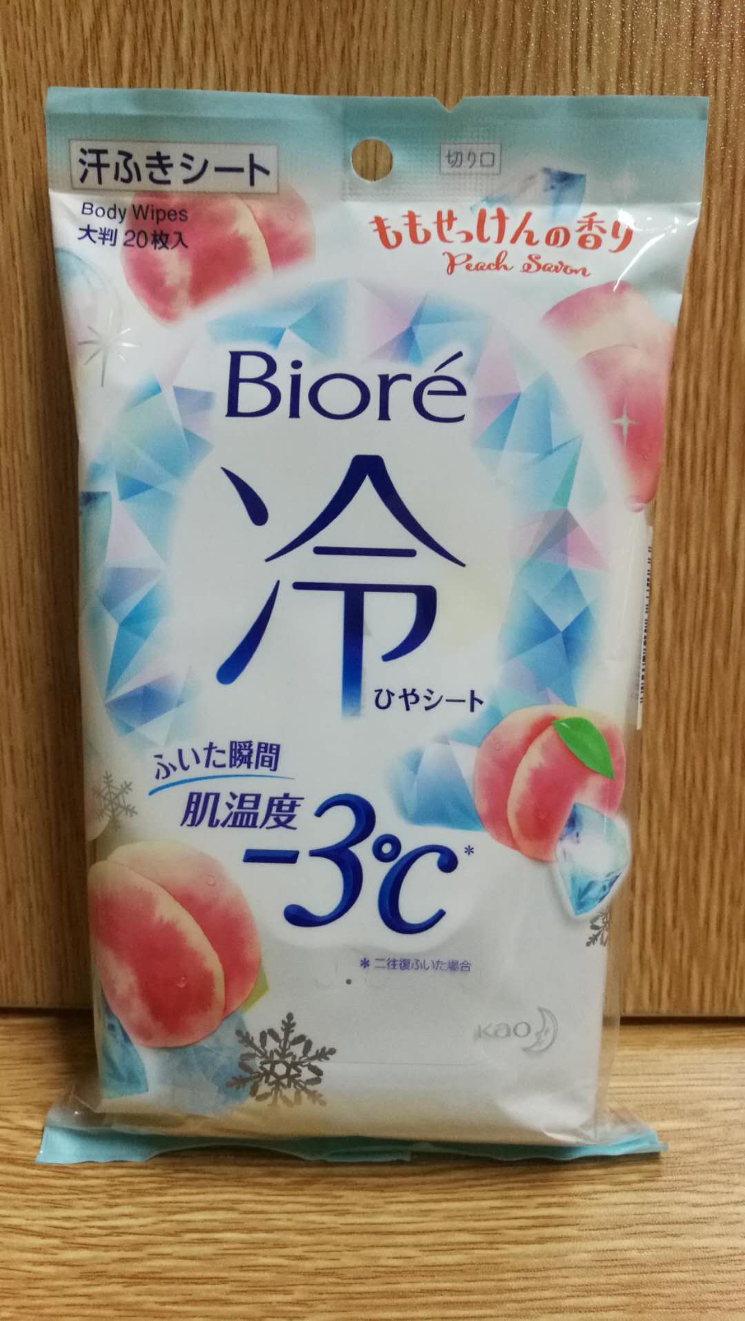 花王碧柔Biore冷感濕巾蜜桃香皂香味 大尺寸20片入