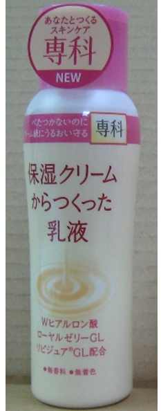 特長: ◎ 富含保濕有效成份--玻尿酸與蜂王乳精華配合,原使用在精華霜的高級保濕成份,讓乳液的保濕力更加倍,達到極滋潤的效果!無香料無著色,不易引起過敏,溫和照拂肌膚!