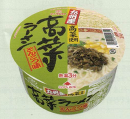 【原材料】油炸麵(小麥粉、植物油脂、鹽、蛋粉)、配料包(辣椒高菜、玉米)、湯(豬肉精華、豬油、食鹽、烤芝麻、粉末醬油、蔬菜粉末、植物油脂、糖(葡萄糖、砂糖)、水解蛋白質、粉末油脂、蔥、雞精華、發酵調味料、香辛料、酵母提取物、/調味料(氨基酸等)、碳酸鈣、堿水、PH調整劑、栀子色素、氧化防止劑(维E)、香料、薑黃色素(一部分材料含有小麥、雞蛋、牛奶、芝麻、大豆、雞肉、豬肉、食用明膠)。