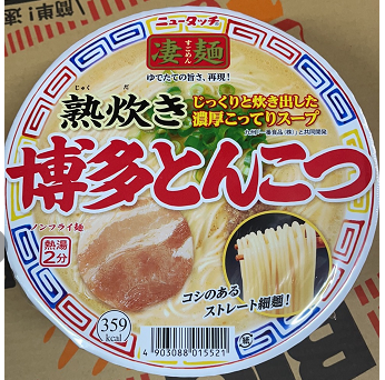 【原材料】麵(小麥粉(日本國內製造)、食鹽、大豆食物纖維、湯(醬油、動物油脂、塘類、食鹽、香辛料、雞肉提取物、姜汁提取物、)、蛋白水解物、煮干粉末、植物油脂、豬肉提取物、釀造醋、淀粉、洋蔥粉、蒜泥提取物、姜汁提取物)、干料(調味豬肉、蔥、干䇹)/加工淀粉、調味料(氨基酸等)、焦糖色素、酒精、堿水、增粘劑(加工淀粉、黃原)、抗氧化劑(維生素E、栀子色素(一部分含有小麥、大豆、雞肉、豬肉、明膠、)。