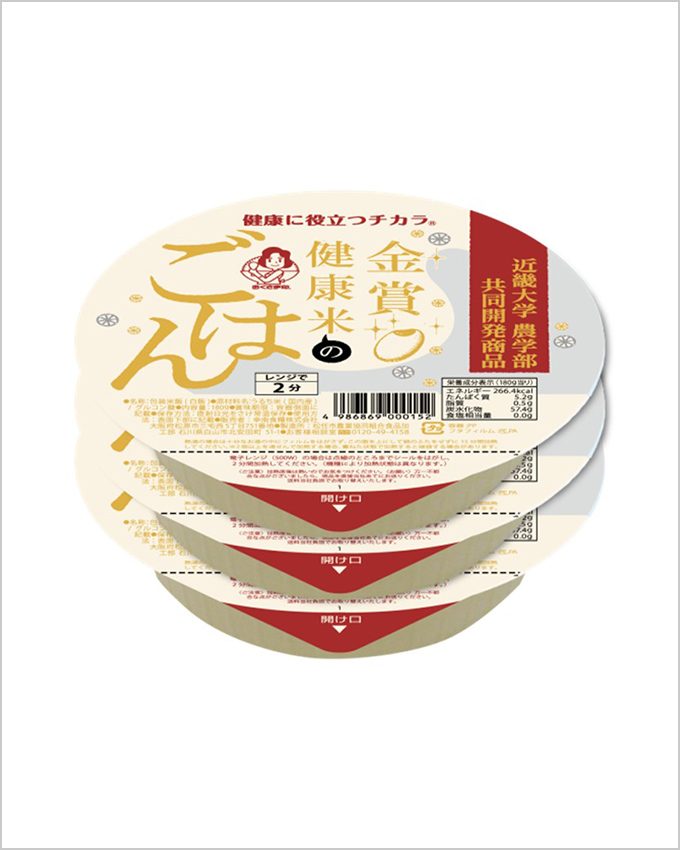 特長: ①采用能保留糙米营养成分的精米法“健康保持制法”。 与被碾过的白米相比,营养价值优异,好吃;使用了美味的大米。 ②用微波炉加热2分钟即可食用。