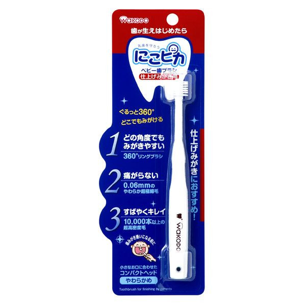 牙刷是360°覆蓋著0.06mm的柔軟超級極細毛,這讓敏感的嬰幼兒嘴巴和牙齒都能得到溫和的呵護。小小的嘴巴都能輕易進入的小型牙刷。
