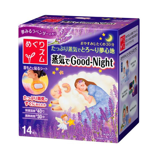 Good-Night肩頸專用薰衣草香蒸氣式熱敷貼讓繃緊一天的肩頸與腰腹部肌膚沉浸在約40℃的溫度裡。搭配薄型柔軟材質設計,讓休息中的肩頸與腰腹部享受舒適的spa感