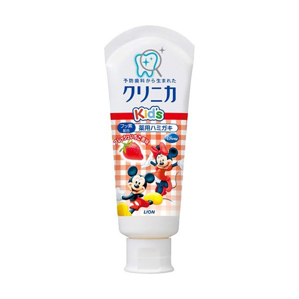 日本 獅王LION Disney米奇防蛀固齒兒童牙膏 可吞食 草莓口味 60g