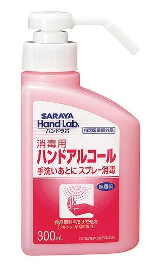 SARAYA Hand Lab手用消毒噴霧是專門用在處理食品及食品添加物時使用的手指消毒乙醇。含有酒精,甘油,乳酸鈉等成分,不添加任何香料。推薦在烹飪時,用餐前或者洗手時使用。採用特殊的噴霧器,用手指輕輕壓一下液體就能輕鬆噴出來,有效方便。不用擔心殘留的味道。