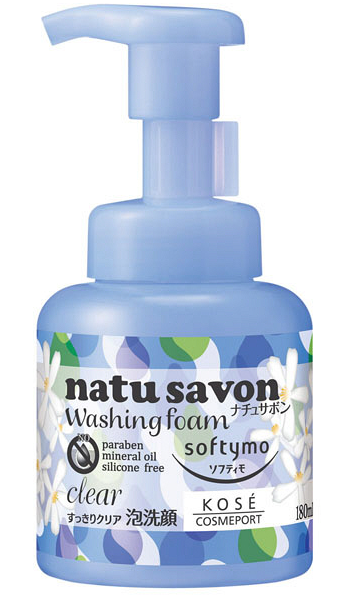 高絲softymo natu savon洗臉泡沫含有100%的氨基酸清潔成分,不含任何石油系表面活性劑、礦物油、防腐劑和添加劑,不添加任何色素。輕輕一按,就有大量豐富的的泡沫。輕輕包裹灰塵的皮膚,充分洗淨,健康細膩,方便快捷。植物提取精華,清潔肌膚的同時保持肌膚滋潤不乾燥。