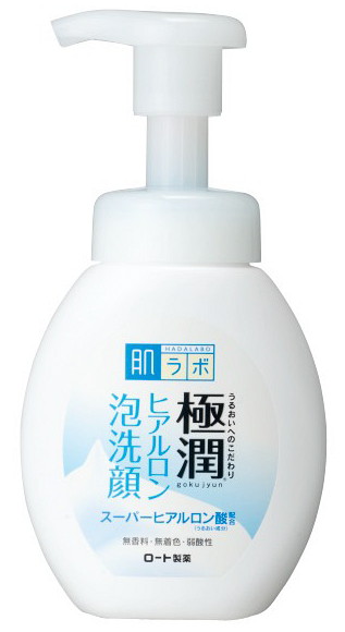 樂敦肌研極潤泡泡型玻尿酸保濕洗面奶不添加酒精和礦物油,無香料、無著色,弱酸性,不傷害皮膚。豐富細膩的泡沫有效地將臉上多餘的皮脂和污垢清潔乾淨。配合超級玻尿酸成分,深入滲透滋潤角質層,鎖住水分不流失,令肌膚細膩柔滑不乾燥緊繃。