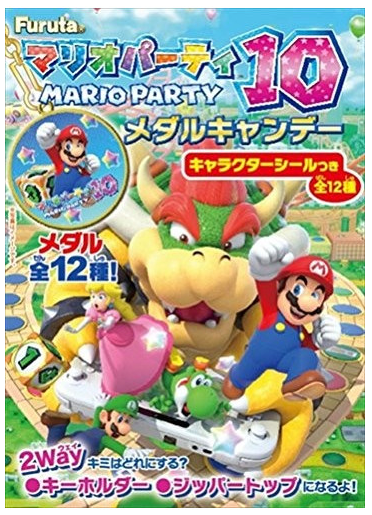Furuta馬里奧派對獎牌糖果使用了砂糖、麥芽糖、酸味料、食用香料等原材料製作而成。酸酸甜甜的糖果,裡面含有馬里奧貼紙和金牌,一共12種圖案,隨機出現,食玩兼備,趣味無窮。