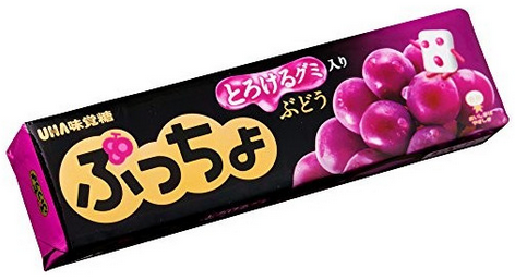 味覺糖悠哈UHA紫葡萄果汁夾心軟糖使用了麥芽糖、砂糖、明膠、濃縮果汁、殺菌乳酸菌飲料、果糖葡萄糖、蘋果泥、植物油、甜味料等原材料製作而成。在美味的酸奶軟糖種加入韌勁十足的橡皮糖和木糖醇顆粒,配合葡萄、蘋果、檸檬三種新鮮果汁,酸酸甜甜,咬勁十足,Q彈多汁。
