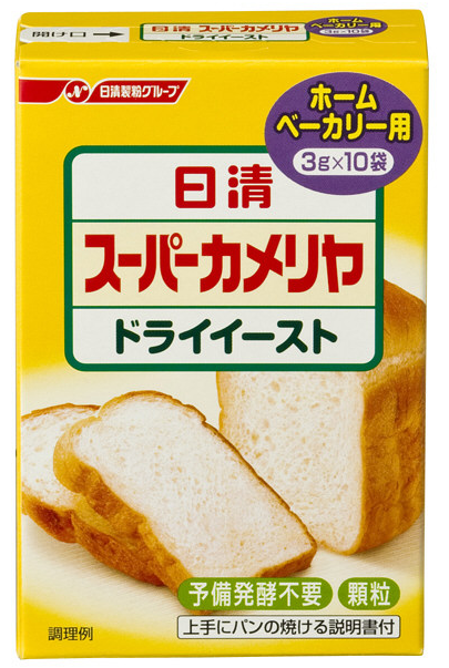 日清乾酵母使用了乾酵母、乳化劑、維他命C等原材料製作而成。因為是不需要預備發酵的顆粒狀,因此可以直接跟粉末混合在一起使用。可以用在麵包、點心等的製作上,用途廣泛。使用真空的獨立包裝,保存性高。