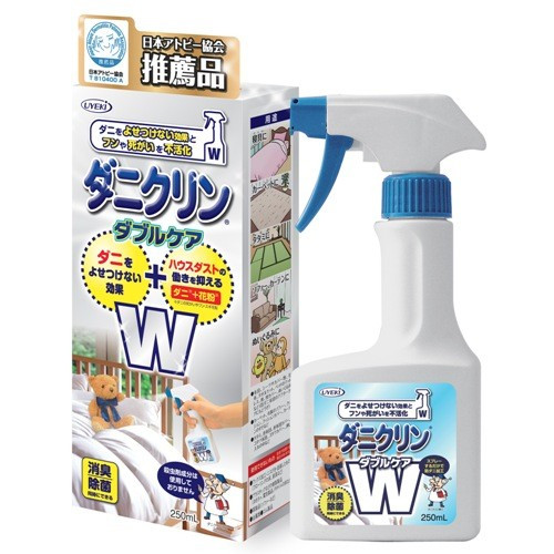 此款噴霧擁有可以除螨蟲,同時抑制房間裡的粉塵的雙重功效。抑制螨蟲的尸體、糞便和花粉的活動。考慮到安全性問題,採用了安全成分,即使是口碰到噴霧噴灑的地方也沒問題。也能同時消臭除菌。可用於寢具、地毯、沙發和玩偶等的除螨。