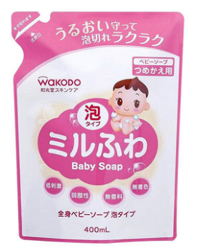 此款沐浴露補充裝无添加、无香料、无着色、无防腐剤、无酒精、无矿物油,安全健康,新生宝宝也可使用。为肌肤敏感的宝宝准备的泡沫型低刺激性婴儿沐浴液,加入牛奶及弱酸性氨基酸系清洁成分、天然氨基酸系保湿成分配方,清洁的同时呵护娇嫩肌肤。蓬松、细腻的泡泡能够轻柔地清洁宝宝娇嫩的肌肤,洗后滋润光滑。有趣的泡沫型婴儿沐浴露,压出即是奶油般细腻的泡沫,用量更节省,使用更方便,洗澡更乐趣,更易清洗。