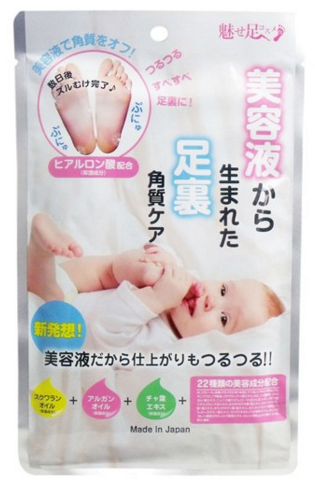 此款去角質死皮足膜含有玻尿酸、深海鮫肝油、摩洛哥堅果油、茶葉油及22種美容成分,能夠軟化日常生活中由於摩擦等產生的老舊角質死皮,使之自然脫落,令腳部肌膚回復細嫩柔滑。