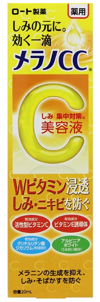 此款美容液含有雙效維生素成分-維生素C和維生素E,能夠抑制黑色素的生成,促進血液循環,預防雀斑、痘痘的生成,調整肌膚狀態,使肌膚健康亮麗。配合維生素C和多種保濕成分,有效深入滲透角質層,滋潤保濕。