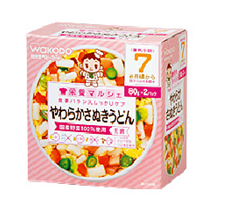 ◎ 加入大量蔬菜,是適合嬰幼兒食用的細細短短讚岐烏龍麵。