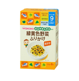 ◎ 使用日本國產綠黃色蔬菜,如: 南瓜與紅蘿蔔等的蔬菜,富含B胡蘿蔔素!再搭配上香香又有營養的鰹魚,讓開始學習吃飯的嬰幼兒,愛上食物的美味! ◎ 綠黃色蔬菜與鰹魚都是小小薄屑片狀,適量拌入稀飯、乾飯、麵食中,就是嬰幼兒離乳後,開始學習吃飯的豐富餐點! ◎ 攜帶式便利小包裝,每次使用一袋,不必再調節份量,在家或外出時都方便!