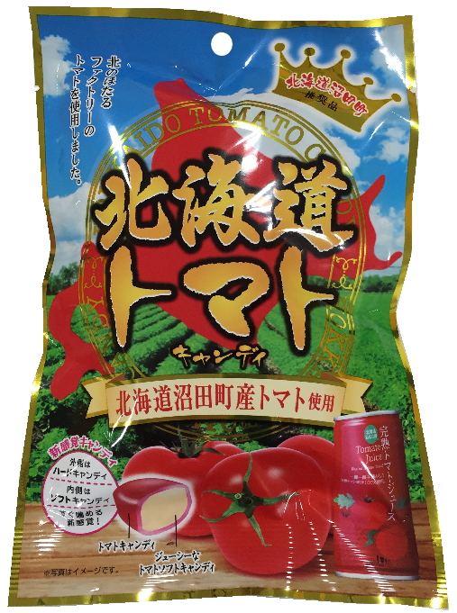 使用了北海道沼田町產的新鮮番茄製作,每一顆番茄都是經過細心栽培生長出來的。番茄糖外硬內軟,美味新感覺。
