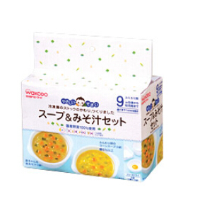 ◎ 玉米蛋湯與嬰幼兒味噌湯各1盒,是湯品的組合。
